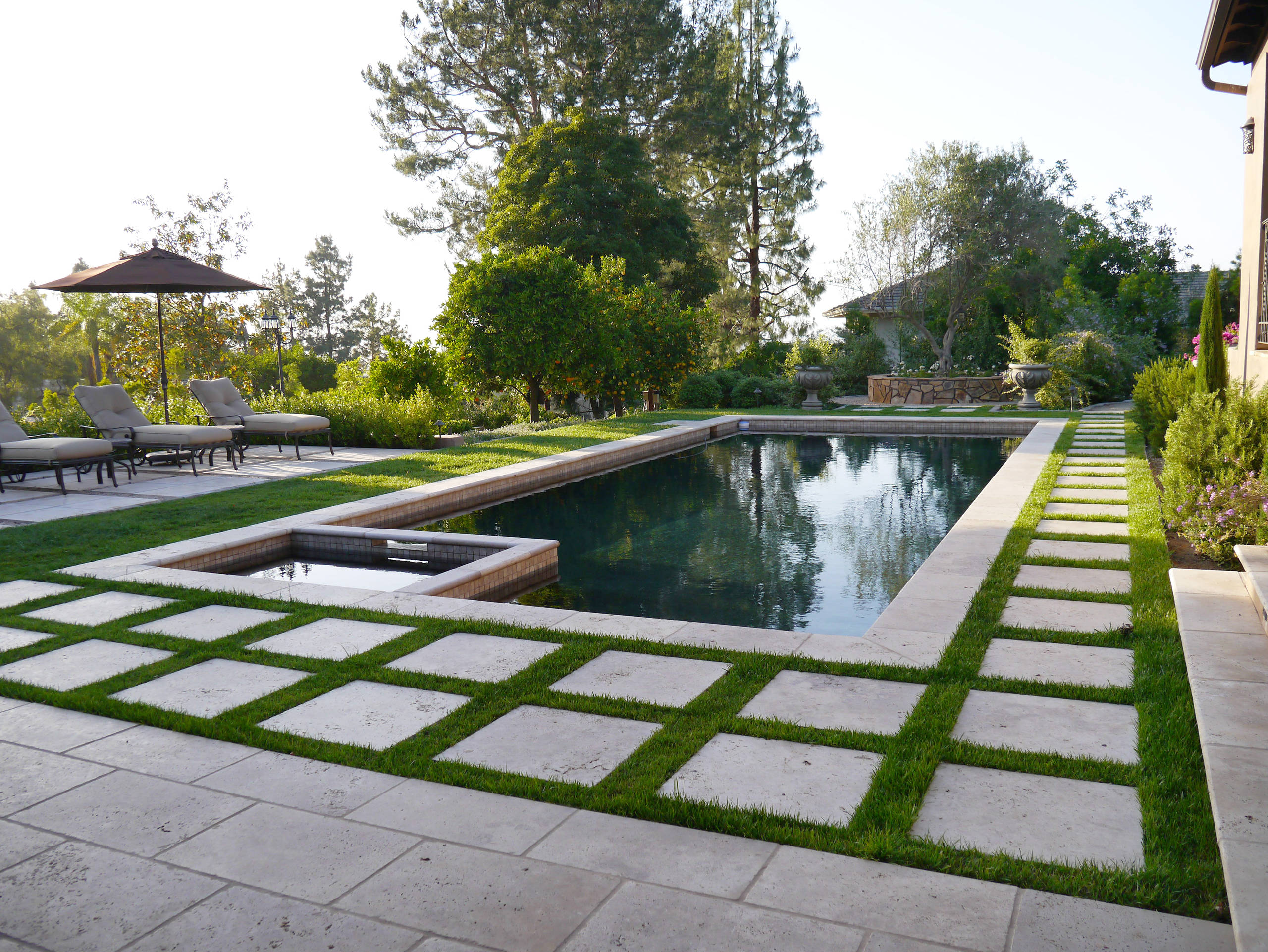 Keep grass and weeds in check. Start by excavating the area in your yard where you plan on installing the pavers, then filling that space with a. Travertine pavers with artificial grass installation. Unlike other pavers similar to concrete or brick, travertine pavers remain cool under the foot, are slip resistant and are super save. This is a more traditional setting and while the tile may not be directly exposed to the elements of water and sunlight, it will hold up beautifully to wind and foot traffic.